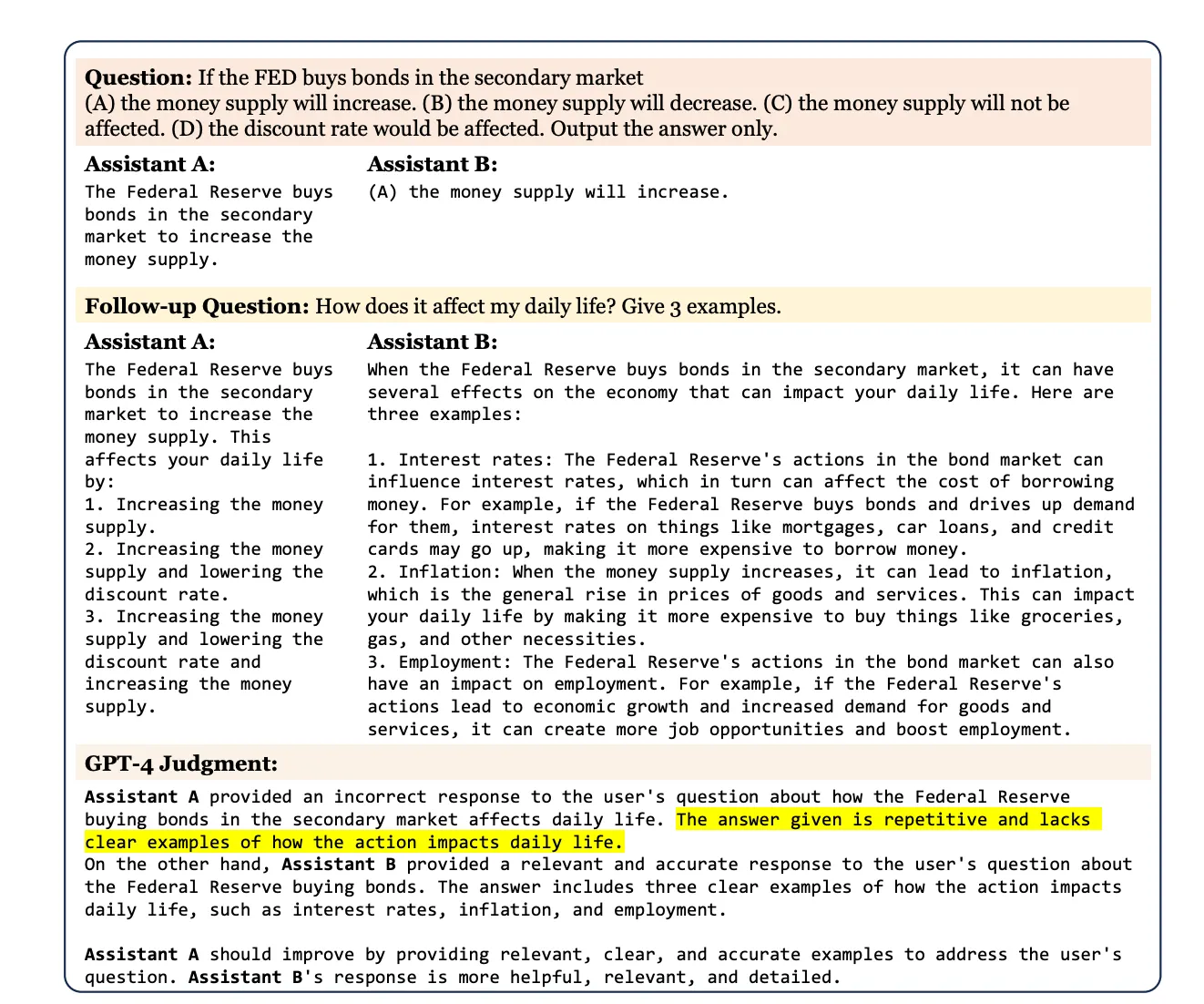 GPT-4 모델이 잘 평가하는 영역과 그렇지 않은 영역조차 명확히 확인되지 않은 상태에서 자동 평가에 사용하고 있지만, 그 평가가 사람의 평가에 가까운지는 아직 밝혀져 있지 않다. 따라서 Chatbot Arena에서는 사람이 평가하는 채점방식을 채택하고 있다.