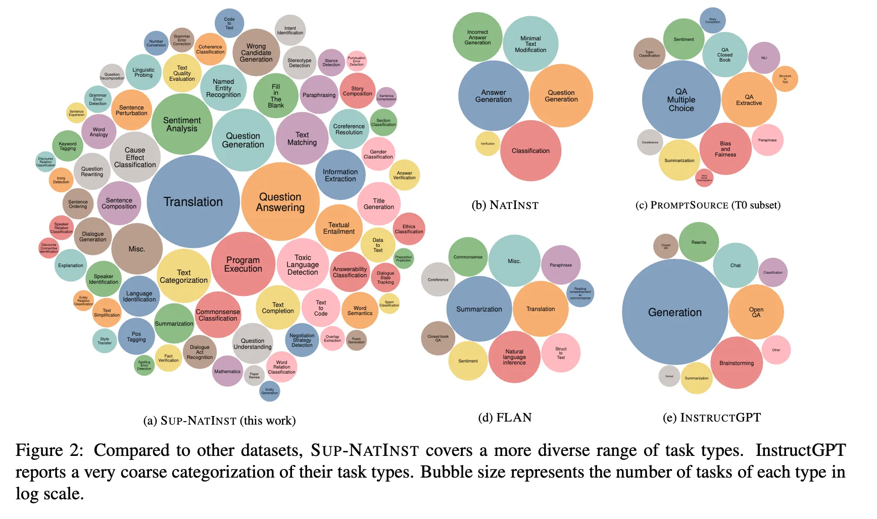• Yizhong Wang, Swaroop Mishra, Pegah Alipoormolabashi, Yeganeh Kordi, Amirreza Mirzaei, Atharva Naik, Arjun Ashok, Arut Selvan Dhanasekaran, Anjana Arunkumar, David Stap, Eshaan Pathak, Giannis Karamanolakis, Haizhi Lai, Ishan Purohit, Ishani Mondal, Jacob Anderson, Kirby Kuznia, Krima Doshi, Kuntal Kumar Pal, et al.. 2022. Super-NaturalInstructions: Generalization via Declarative Instructions on 1600+ NLP Tasks. In Proceedings of the 2022 Conference on Empirical Methods in Natural Language Processing, pages 5085–5109, Abu Dhabi, United Arab Emirates. Association for Computational Linguistics.