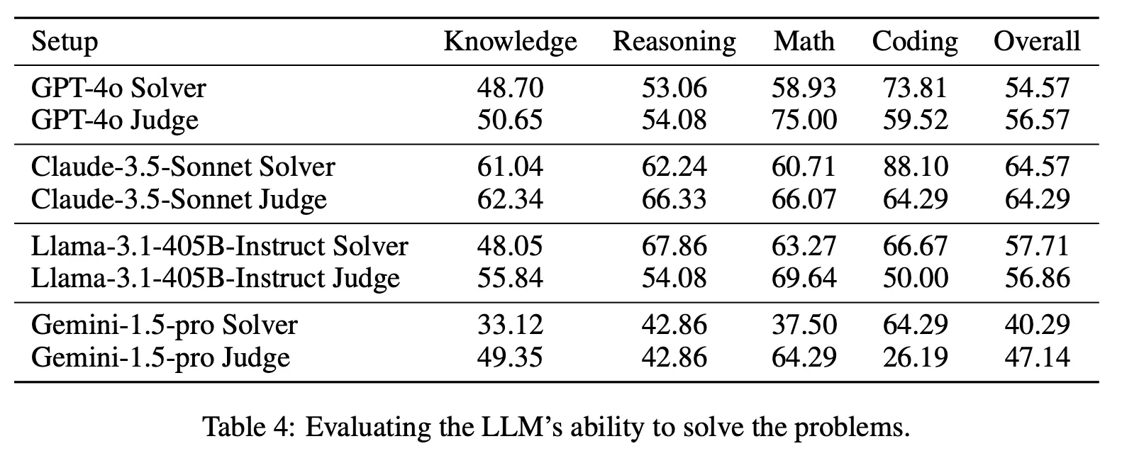 주어진 문제를 직접 푸는 것(Solver)과 주어진 답변에서 더 나은 것을 판단(Judge)하는 능력을 비교