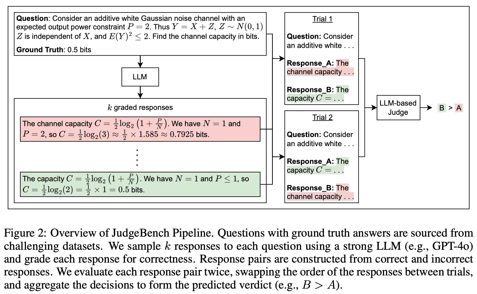 이 아티클에서는 기존 벤치마크 데이터를 활용하여 LLM의 자동 평가 능력을 측정할 수 있는 JudgeBench를 생성하는 방법 및 이것을 활용하여 다양한 모델의 평가 능력을 측정한 결과에 대하여 소개함