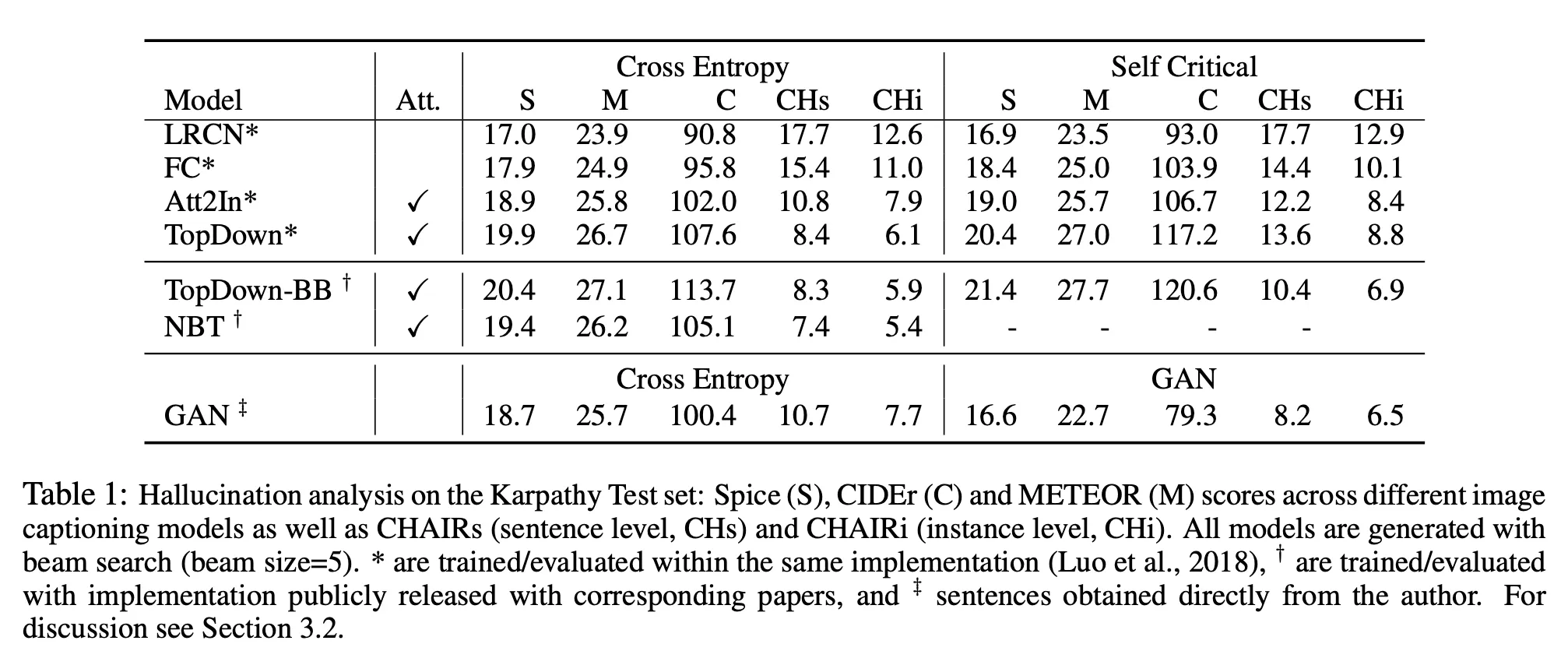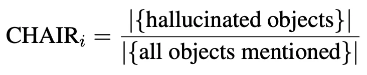 이 논문에서는 특히 object hallucination 현상을 중점적으로 확인할 수 있는 새로운 metric인 'CHAIR'를 제안하고 어떤 요소들이 이러한 object hallucination을 만드는데 영향을 미치는지 분석을 수행