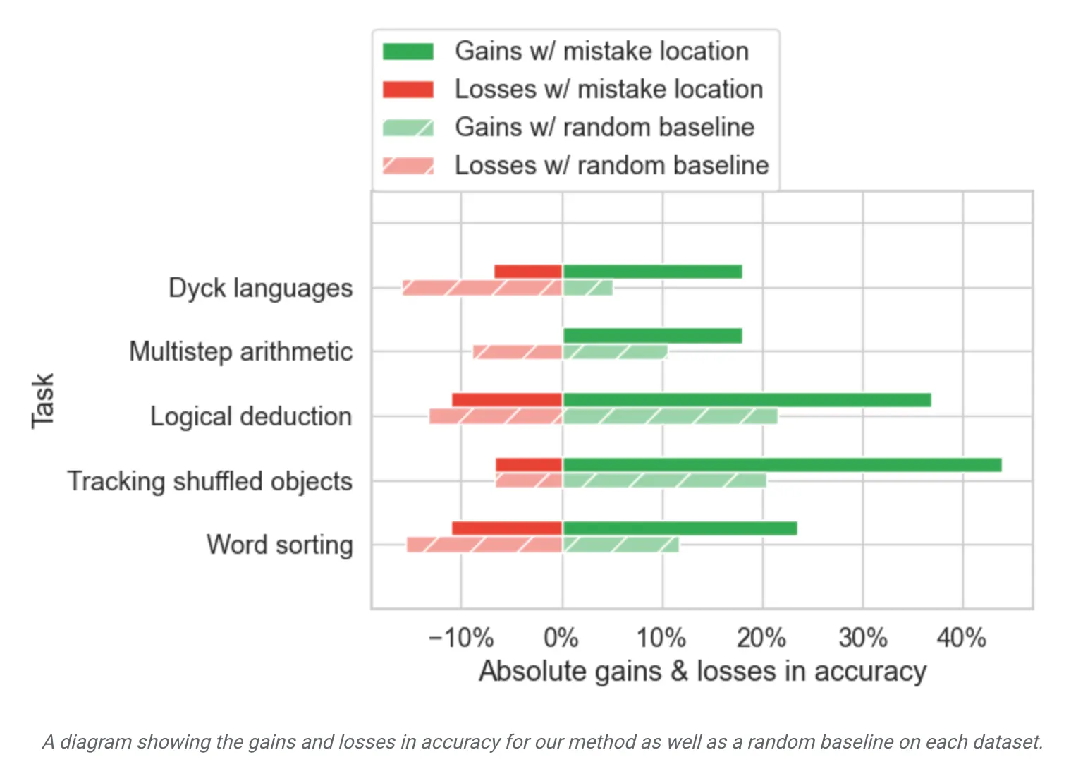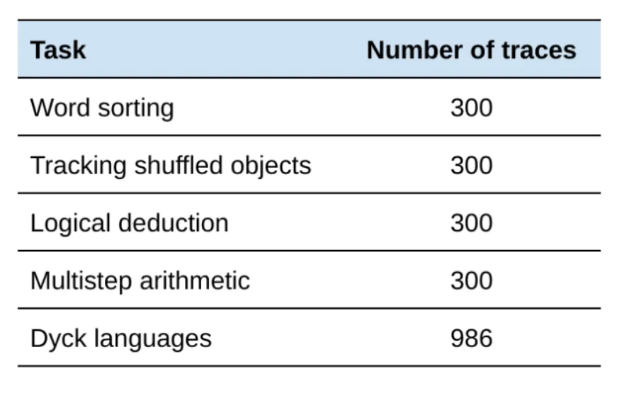 총 5가지 task에 대하여 구성 : word sorting, tracking shuffled objects, logical deduction, multi-step arithmetic, Dyck languages