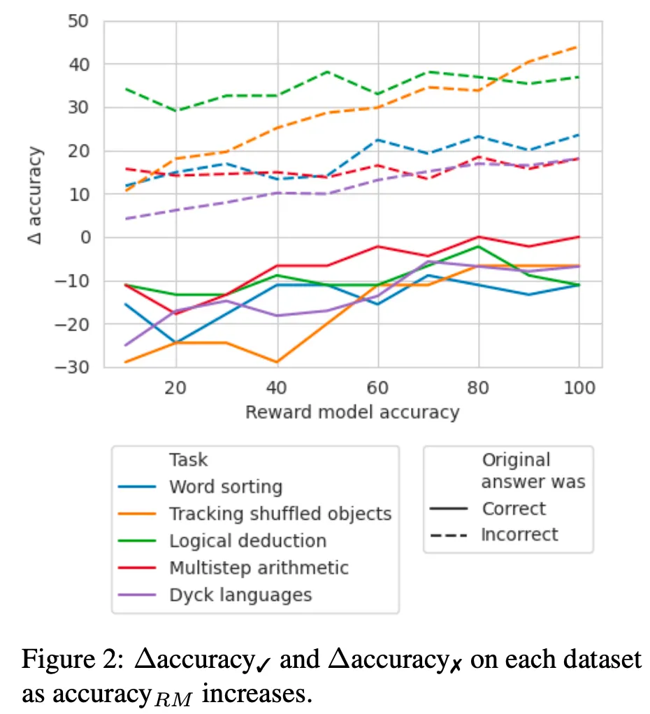 그렇지만 특히 추론이나 논리적 오류를 수정하는 task들에서 종종 정답을 오답으로 바꾸어 성능이 오히려 하락하는 현상이 자주 보고되고 있음