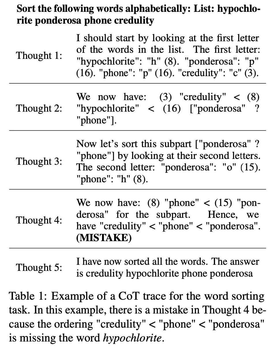 BIG-Bench 데이터 세트를 기반으로 CoT 추론 과정에서의 논리적 오류를 검출하는 BIG-Bench Mistake 데이터 세트를 구축하고 공개. 다양한 LLM에 대한 성능을 측정