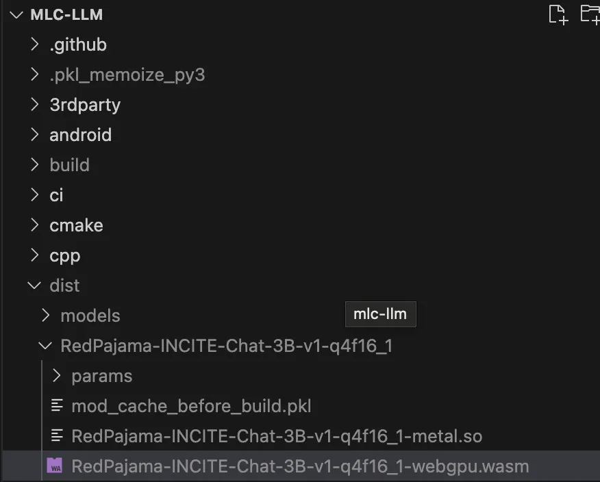 컴파일 후 아래와 같이 /dist/MODEL_ID/.wasm 파일을 확인할 수 있습니다.