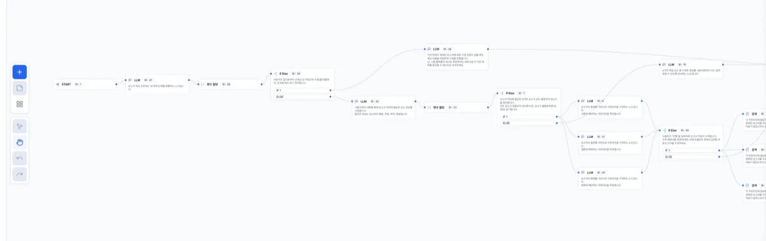 화면에는 여러 종류의 노드가 있습니다. LLM 노드, 조건 분기 노드, API 호출 노드, 변수 설정 노드... 각각이 뭘 하는지 설명은 있는데, 이걸 어떻게 조합해야 내가 원하는 워크플로우가 되는지는 또 다른 문제입니다. 마치 레고 블록을 잔뜩 받아놓고 "이걸로 자동차를 만들어보세요"라고 하는 것 같습니다. 블록 하나하나는 이해할 수 있는데, 조합하는 방법을 모릅니다.